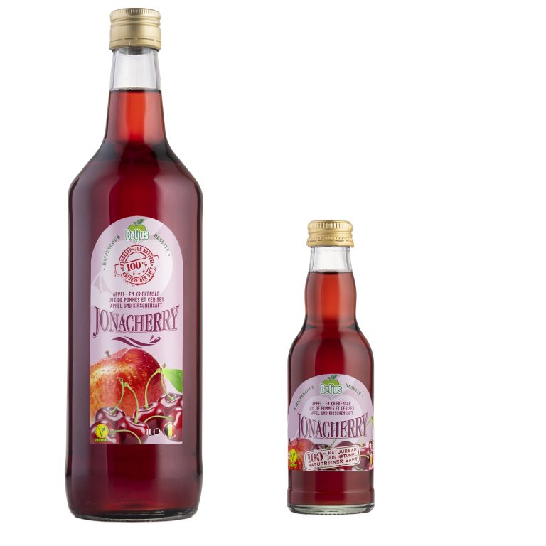 JONACHERRY is een 100% natuurlijk appel (85%) en kersensap (15%) gemaakt van Jonagold en kersen, licht gepasteuriseerd, van de eerste koude persing, zonder toevoeging van suiker, water of conserveringsmiddelen. Onze producten worden aangeboden in een 100% ecologisch formaat.